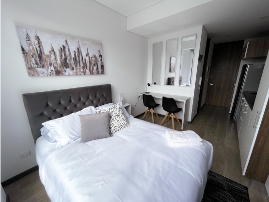 Este apartamento tipo loft cuenta con 20 m² muy bien distribuidos, está completamente amoblado y tiene una excelente entrada de luz natural gracias a su vista exterior.