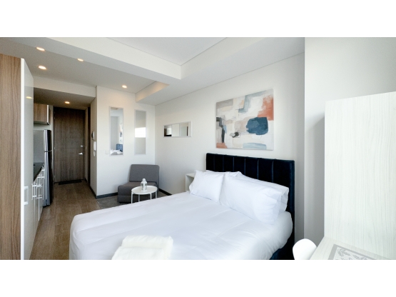 Disfruta de este práctico apartaestudio de 24 m², completamente amoblado, con cocina integral, estufa de inducción, lavadora, baño privado con división de vidrio y acabados modernos.